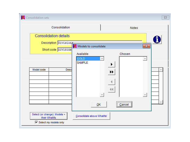 Automatic model consolidation In Strategic Focus Gold edition automatic consolidation of models is included. Combine any number of sets of financials into one consolidated model. Stores favourite or frequent amalgamation lists for regular use. Return to Strategic Focus slide show